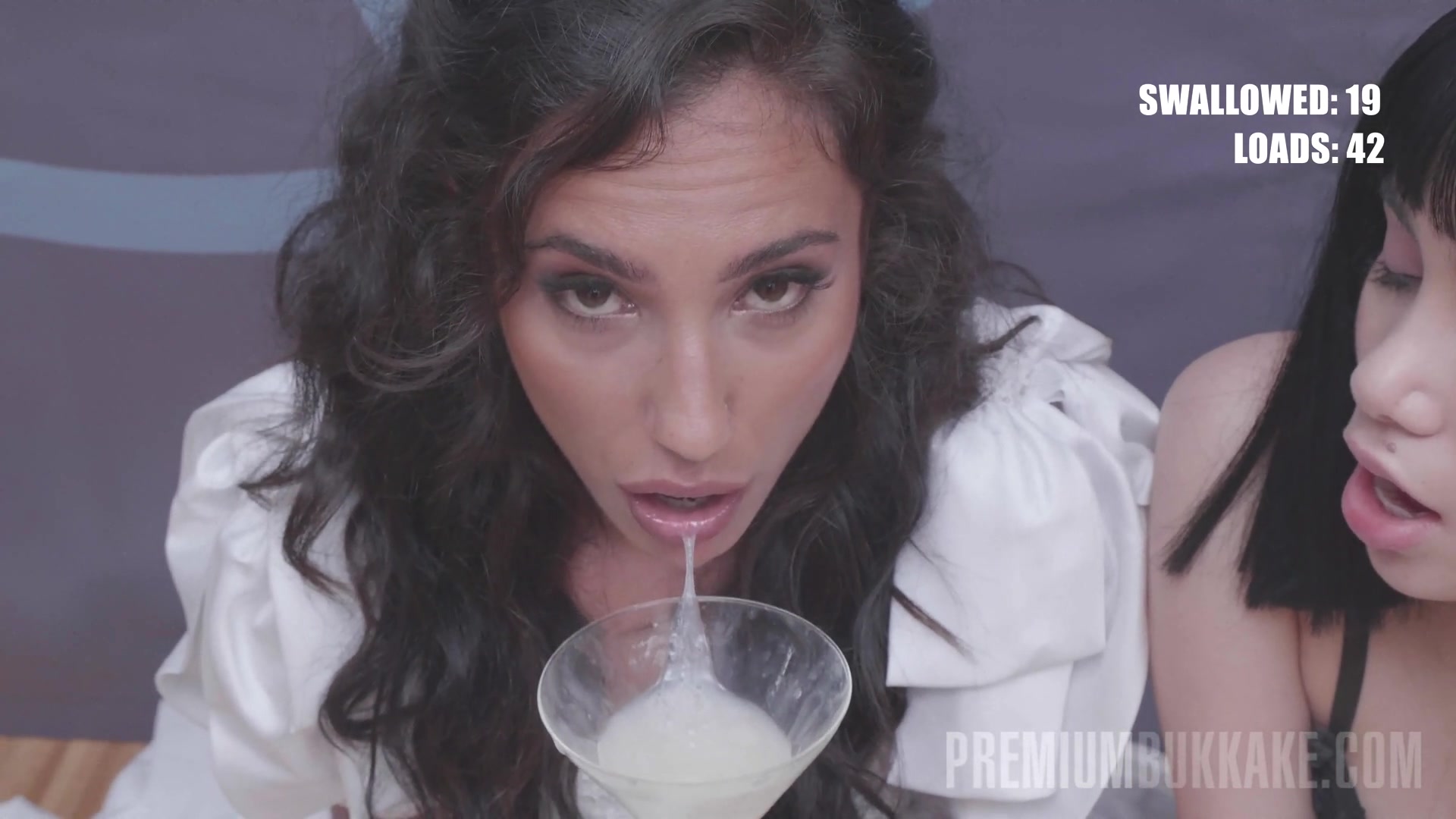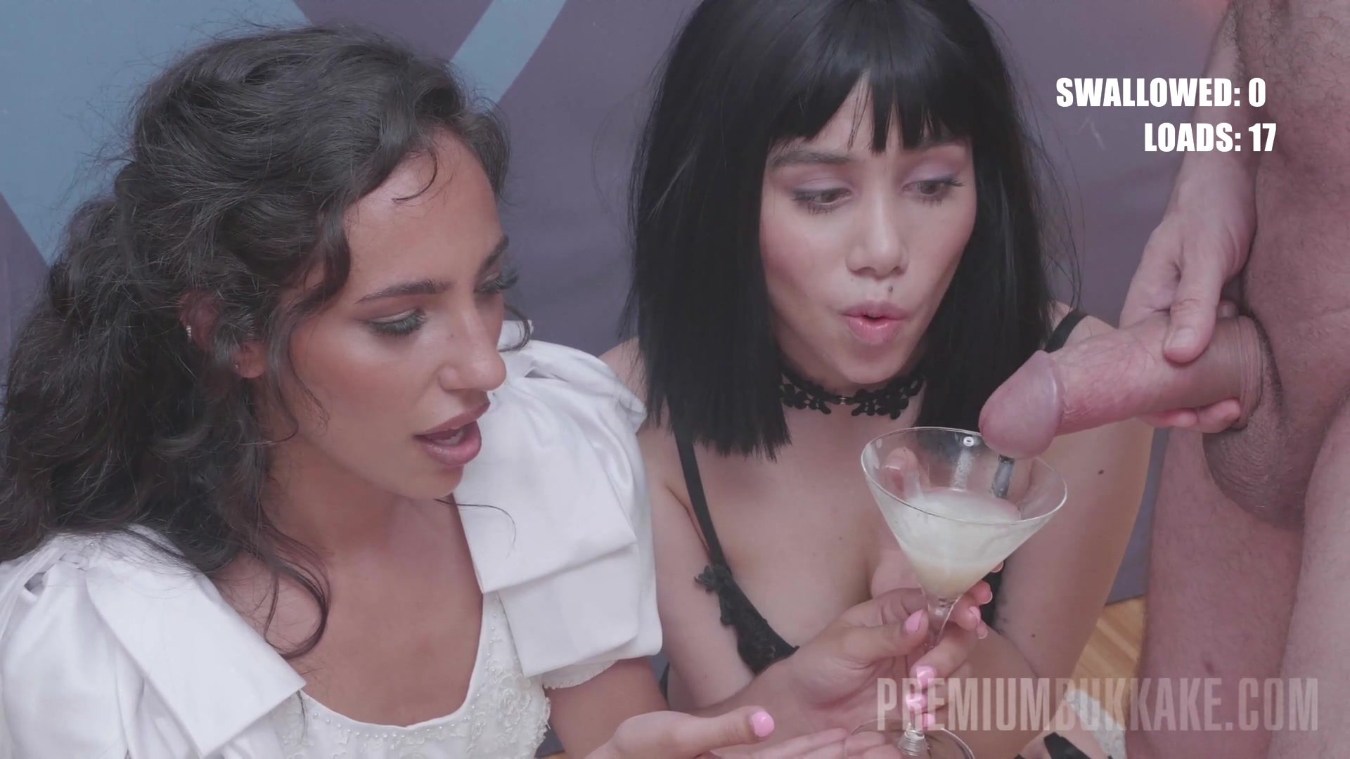 Невеста спермоедка пьет горяченькую прямо с бокала, куда вздрочнула толпа мужиков. Это первый секс кастинг с такой массой спермы для Шерезаде в студии PremiumBukkake и это действительно потрясающее буккаке с самого начала - великолепная Лапьедра в жизни не испытывала столько спермы на своем лице и уж тем более не глотала ее в таком количестве. Красивая девушка, порнозвезда в свадебном платье застенчиво, но соблазнительно сосет члены! Так как она новичок в этом деле, к вечеринке присоединяется более опытная девушка, чтобы помочь Шерезаде направить всю сперму в правильное русло. Марина Голд умеет обращаться с членами, поэтому девушки довольно быстро извлекают из них сперму. Они используют стакан от мартини, чтобы наполнить его спермой сполна, и Шерезада пробует свой первый спермовый коктейль с 19 порциями ... Она делает это сначала с некоторым усилием, но потом хочет большего. Девчонки наполняют еще один стакан, и Шерезада медленно его пьет, хотя уверенней первого. Ее красивое лицо заливают горячей спермой, которая попадает в глаза... Она собирает еще 20 порций и глотает очередной стакан и все еще чувствует себя отлично! Второй кастинг с большим количеством порций и с этой же порнозвездой смотрим в ее профиле!