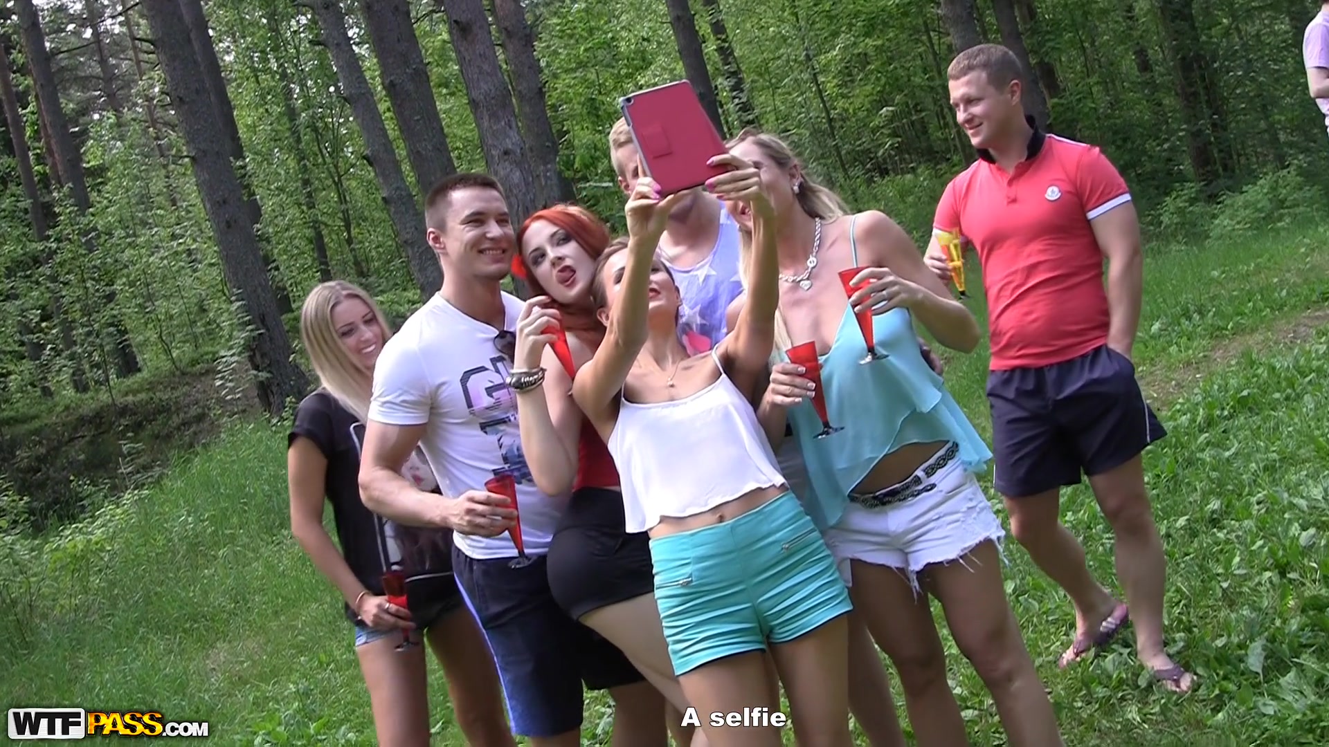 Студенты решили позабавиться немного и на этот раз свою секс оргию провели в лесу. Все началось с шампанского! Зажигательные танцы, пляски, крики, смех и веселье медленно переходит в сексуальную оргию, где кто кто кого хочет трахает и в какую хочет дырку. Двойное проникновение, анальный секс, минеты, горячие шмары просто прелесть!