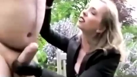 Прелестная блондинка подрочила старику большой и толстый длинный член. С ухмылкой на лице и полным властвованием над послушным рабом девушка в перчатках отлично провела время мастурбируя большой член.